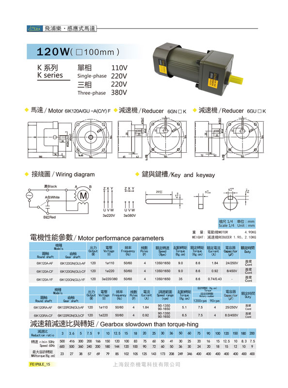 K系列6GN20K感應(yīng)式馬達(dá)120W(100mm)