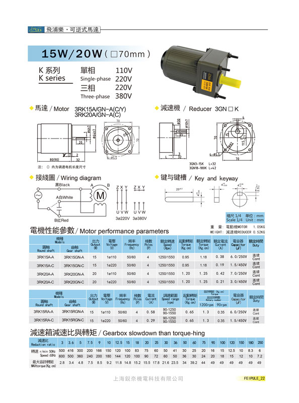 K系列3GN15K可逆式馬達15W/20W(70mm)