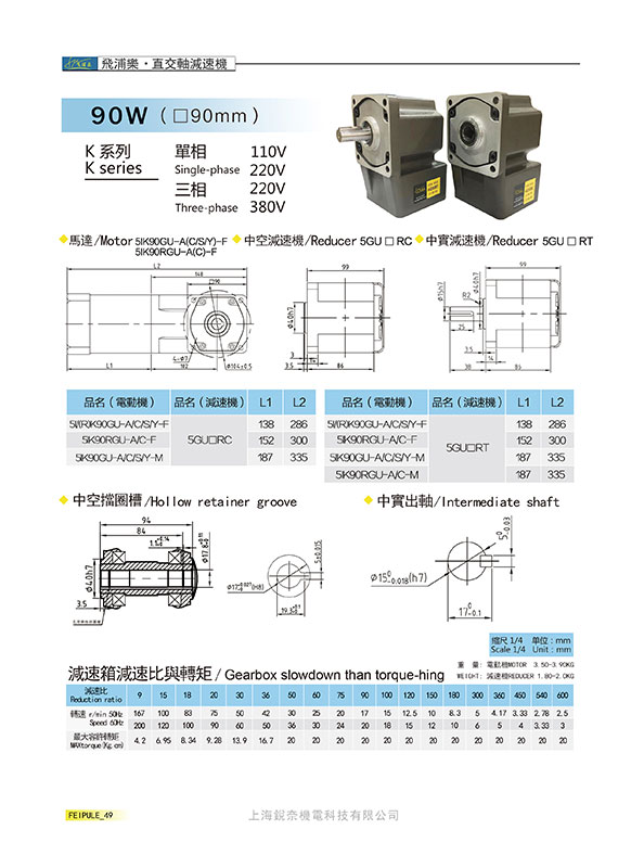 K系列5GU60RC/RT直交軸減速機90W(90mm)